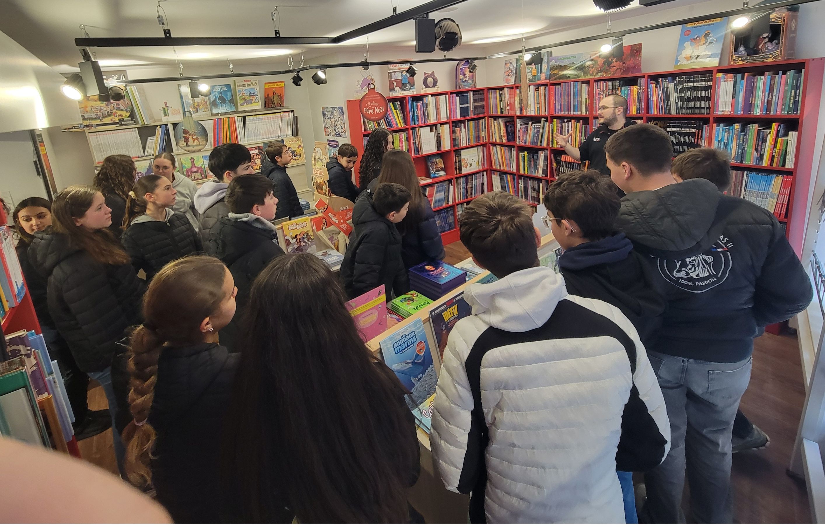 Puis, dans le cadre du dispositif Jeunes en librairie, porté par la DRAC Auvergne Rhône Alpes, ils se sont rendus à la librairie Interludes. Ils y ont rencontré Julien, libraire, qui leur a présenté son métier ainsi que la chaîne du livre : de l’auteur au lecteur, en passant par l'éditeur et le libraire. Chaque élève a pu ensuite choisir un ou plusieurs ouvrages pour un montant de 30 €.