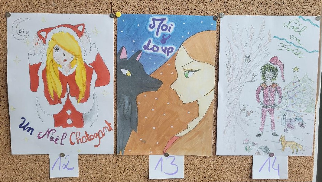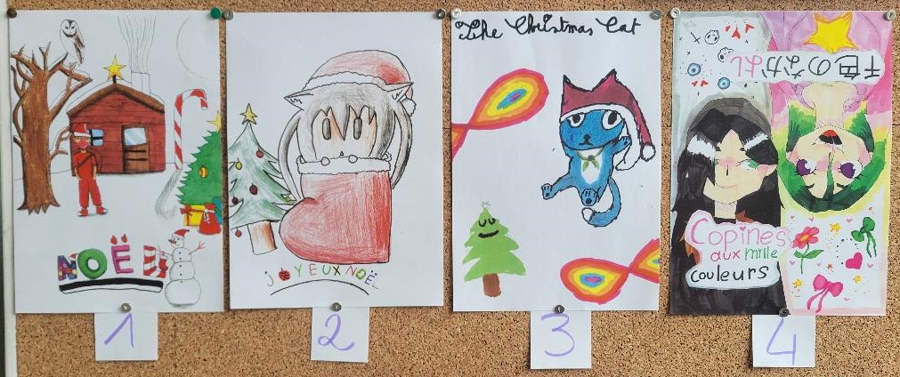 Les dessins réalisés pour le Concours Manga – “Invente la couverture de ton propre manga !” sont désormais exposés ! Vous pouvez les retrouver dans le hall d'accueil du collège.