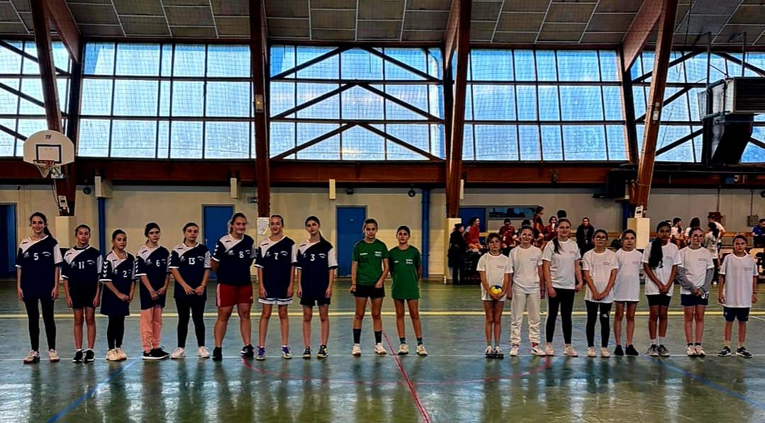 Nos handballeuses jouaient aujourd'hui la finale de district. Elles géraient leur premier match en l'emportant 8 à 2 face au collège Haut de l'Arzon (Craponne). Le deuxième match fut plus compliqué face à une très belle équipe du collège L.Eynac (Le Monastier). Avec une avance d'un seul petit but à la mi-temps, nos benjamines ont tout donné pour finalement creuser l'écart en fin de rencontre et s'imposer 10/7. Un grand bravo aux 8 joueuses qui se qualifient donc pour la finale départementale qui aura lieu au mois de mars.
