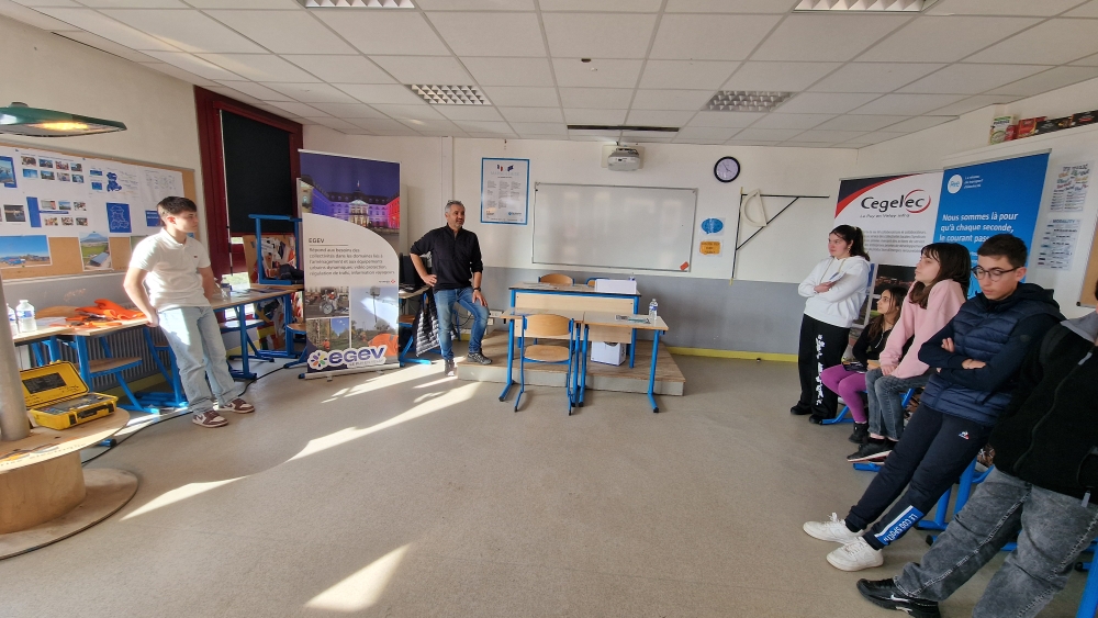 - des stands animés par des professionnels : Enédis, RTE et CEGELEC, le 28e régiment de Transmissions et sa plateforme de communication satellitaire, un atelier égalité fille-garçon,