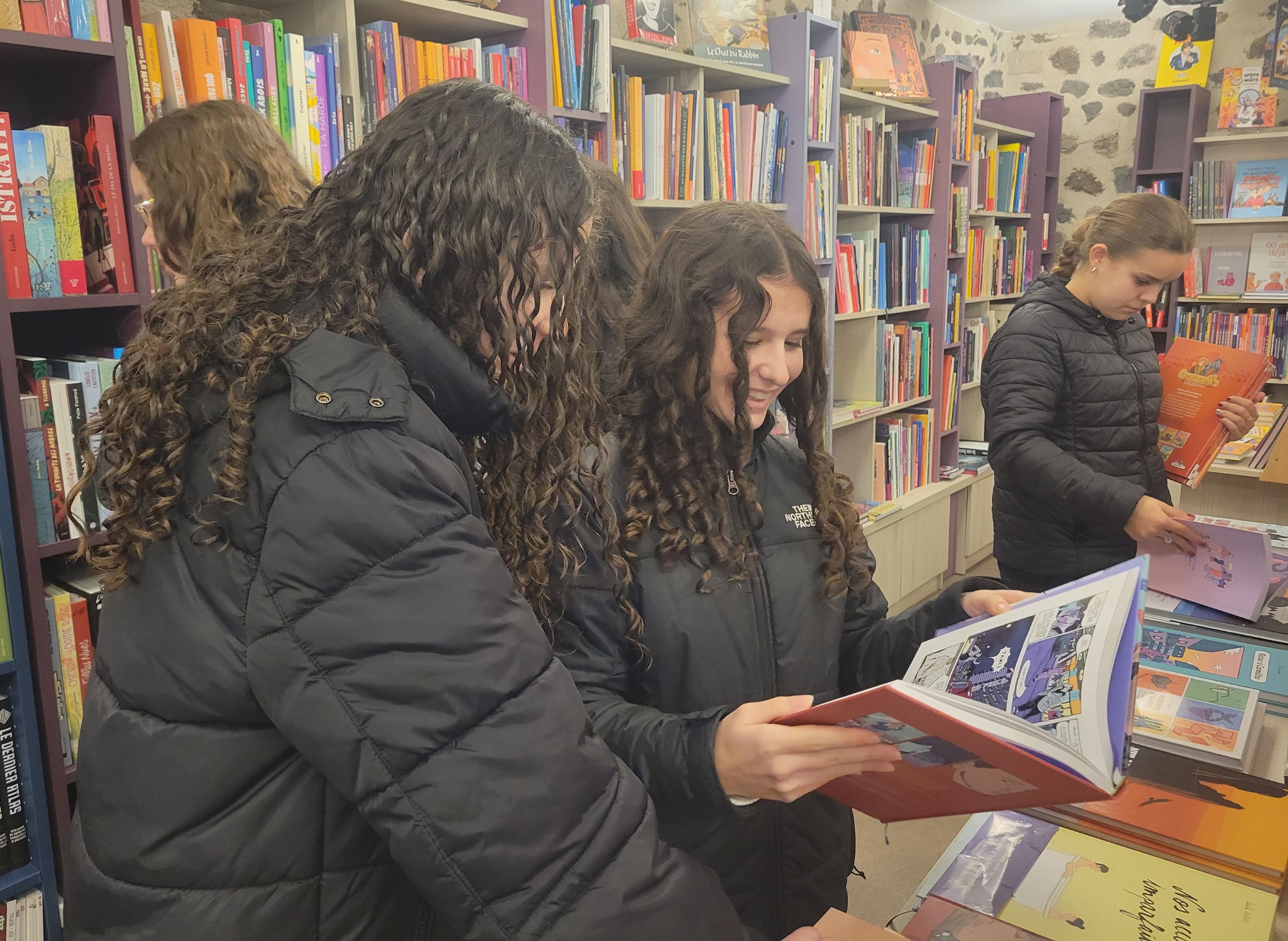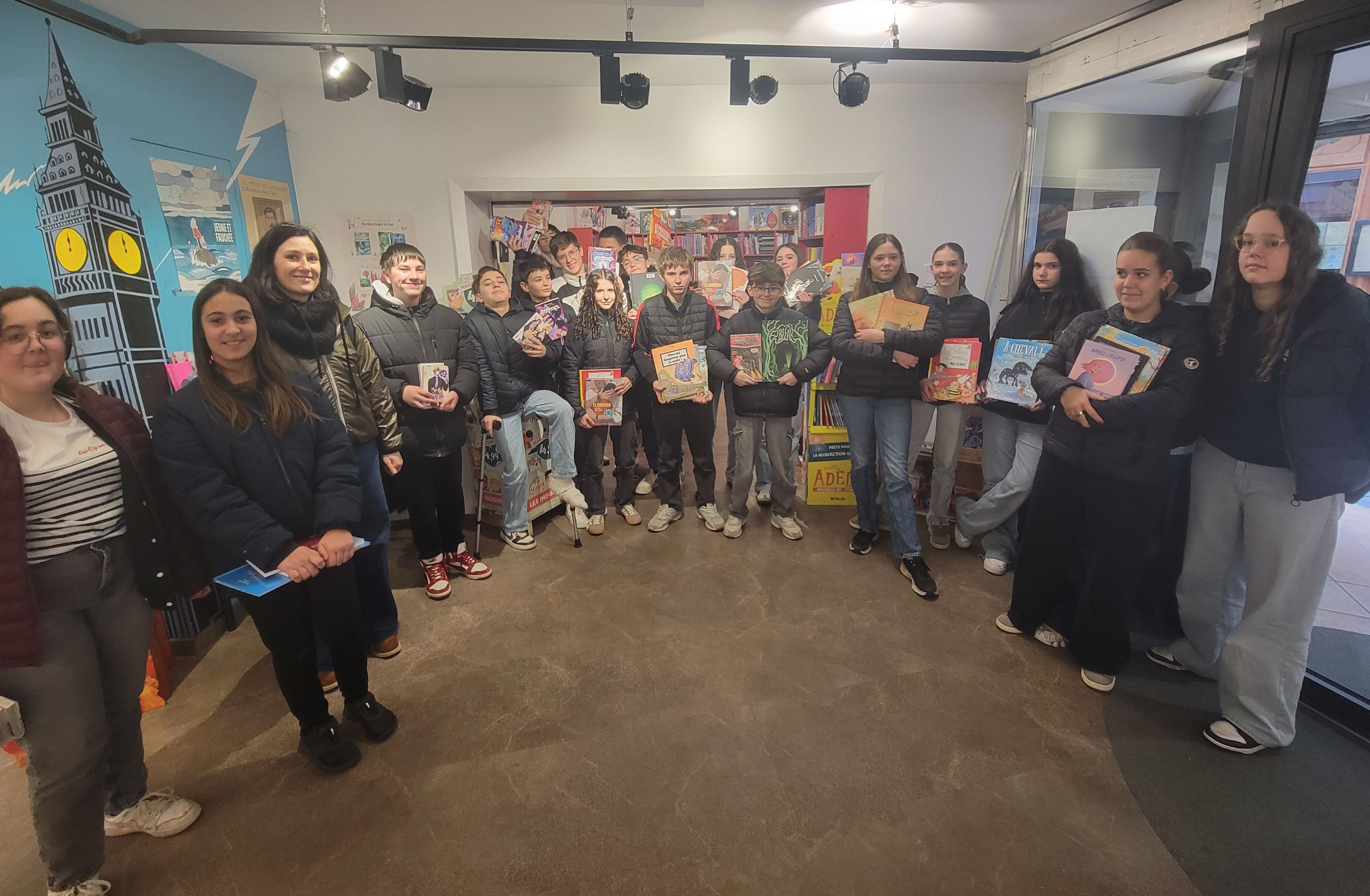 Puis, dans le cadre du dispositif Jeunes en librairie, porté par la DRAC Auvergne Rhône Alpes, ils se sont rendus à la librairie Interludes. Ils y ont rencontré Julien, libraire, qui leur a présenté son métier ainsi que la chaîne du livre : de l’auteur au lecteur, en passant par l'éditeur et le libraire. Chaque élève a pu ensuite choisir un ou plusieurs ouvrages pour un montant de 30 €.