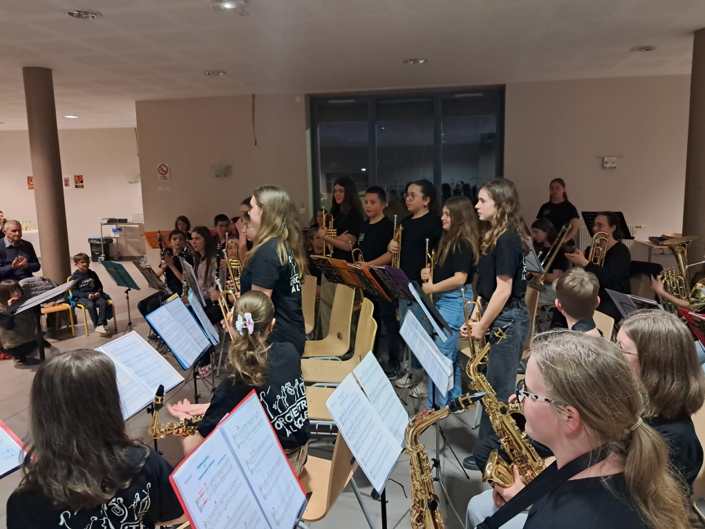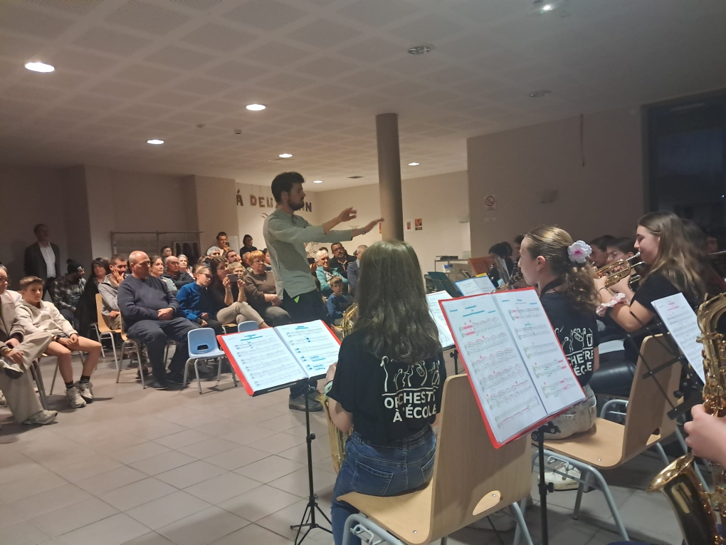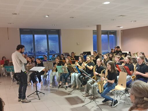 Les élèves ont joué 5 morceaux, dirigés et commentés par le chef d'orchestre Ernesto Insam. Certains élèves ont aussi lus des poèmes en acrostiche sur le thème de la musique, écrits pendant le séjour en cours de français.